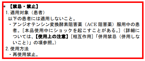 メーカーから具体的な休薬期間は定められていませんが、米FDAでは「治療の過去24時間以内にACE阻害薬を使用した患者には、リポソーバの使用不可(禁忌)」と明記されています。