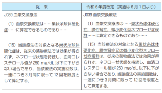 これらに対して、1992年以来、巣状糸球体硬化症のみに保険適応が限定されていましたが、2024年6月より膜性腎症や微小変化型ネフローゼ症候群にも保険適応が拡大されています。