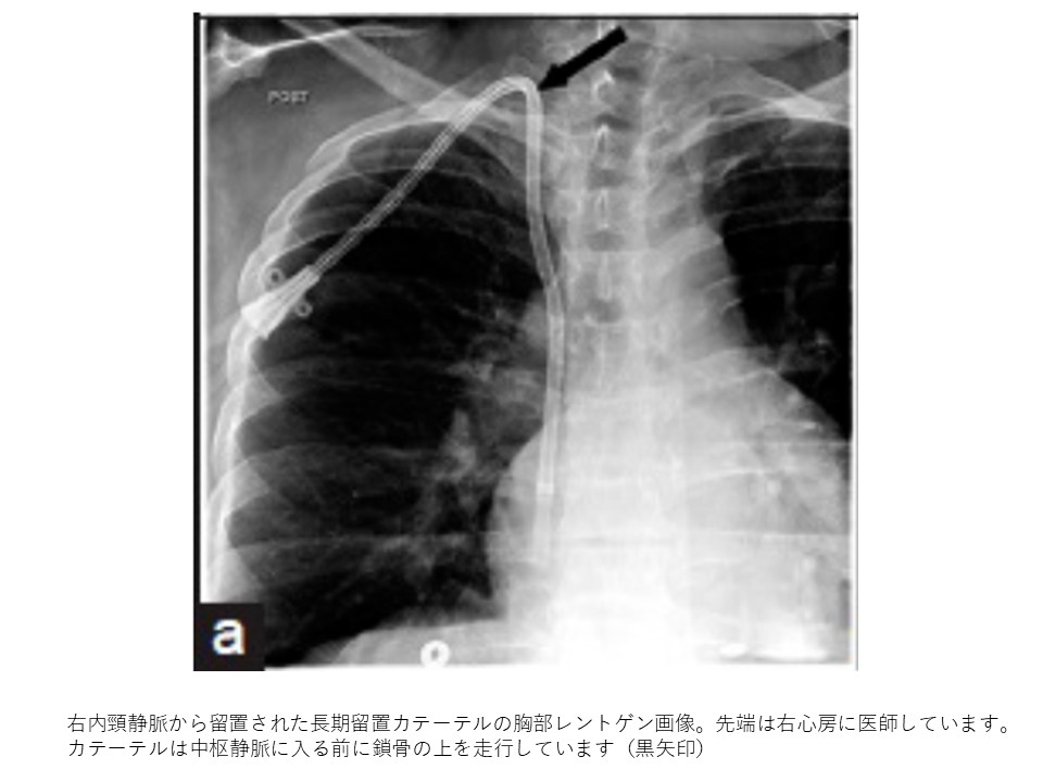 長期留置カテーテルの留置部位としては、右内頚静脈が第一選択です。