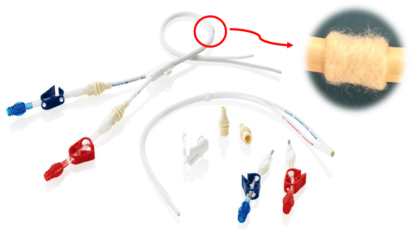 透析用アクセスとしての長期留置カテーテルにはカフ型カテーテルを用います。