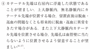 長期留置カテーテルの先端位置は右房内がいいですが、カテーテル本体が長すぎると右房壁に接触してしまう危険性があるので、長すぎる場合は、カテーテル先端を下大静脈内に留置することがあります。